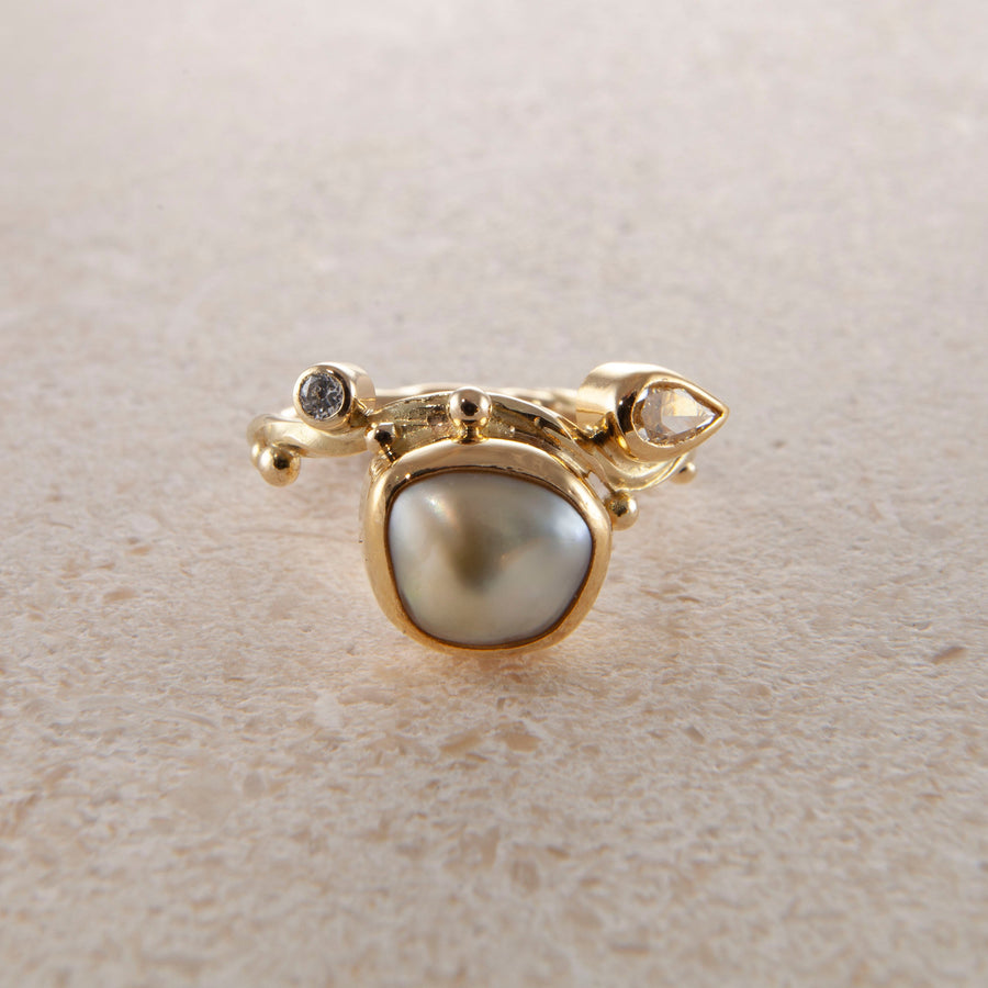 Bergsoe JewellerySeafire 18K & 22K Gold Ring w. Keshi Pearl & Diamond