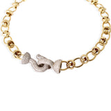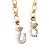 The Chiara necklace features an 18k gold plated oval link chain with a dazzling rhinestone encrusted clasp. Crafted with fine metalwork, this exquisite necklace is sure to make a statement.