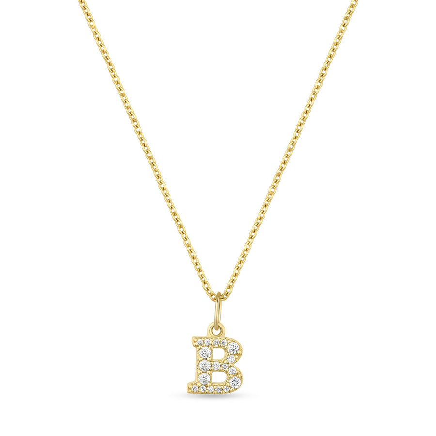CbyC JewelryPetite Letter B Gold Vermeil Necklace w. Zirconias