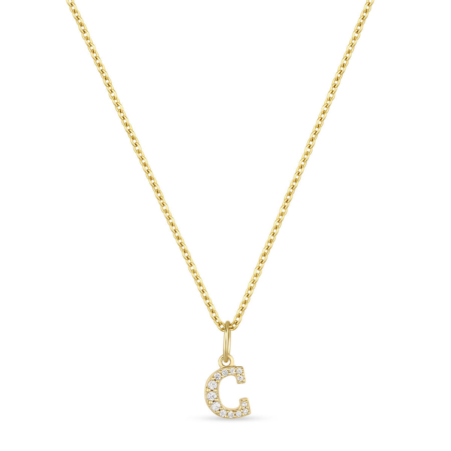 CbyC JewelryPetite Letter C Gold Vermeil Necklace w. Zirconias