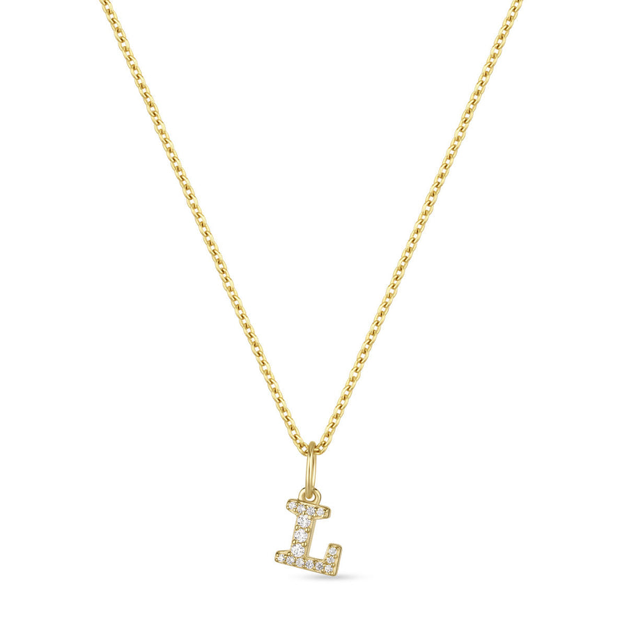 CbyC JewelryPetite Letter L Gold Vermeil Necklace w. Zirconias