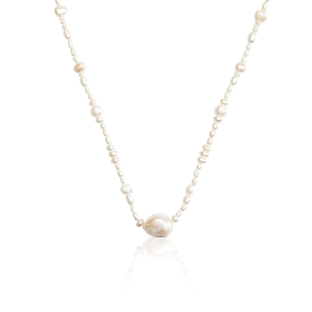 Elegant and beautiful, the Collar Zenda necklace from Nanna Folk is a classic pearl piece that blends feminine charm with sophistication. Basking in the glow of imperfection are a string of natural freshwater pearls of varied shapes and sizes in all their lustrous glory. The necklace length can be adjusted to allow you to choose your favorite vibe.