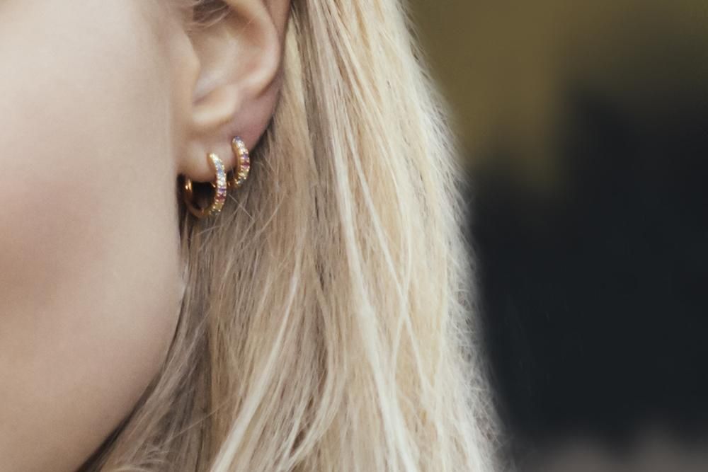 Sif Jakobs JewelleryEllera small Gold Plated Hoops w. Yellow, Pink, Blue, Green, Purple & Red Zirconias