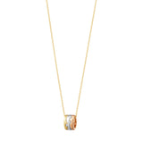 The intriguing Fusion Pendant is crafted in 18 karat yellow, white, and rose gold and set with diamonds of 0.05 carats.