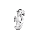 Established in 1904, Georg Jensen maintains an iconic status in the realm of Scandinavian jewellery design. The founder-designer, Georg Jensen, followed a distinct design philosophy of creating jewellery that combined beauty and functionality in a unique blend that holds universal appeal. The Fusion Collection designed by Nina Koppel from Georg Jensen jewellers features an innovative and modular jewellery style that offers the wearer endless combinations of interlinked elements that are similar yet distinct. The Fusion Centre Ring is crafted from 18k whitegold. Small brilliant cut diamonds delicately inserted into the polished surface give the ring an added sparkle.