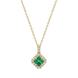 Introducing the Fortuna Verde 18K Gold Necklace with Emerald & Diamonds, a symbol of opulent elegance. This stunning necklace features a striking emerald, surrounded by a halo of brilliant diamonds, set in exquisite 18K gold. Ideal for those who adore luxurious jewelry, it brings together the vibrancy of emerald and the sparkle of diamonds in perfect harmony.