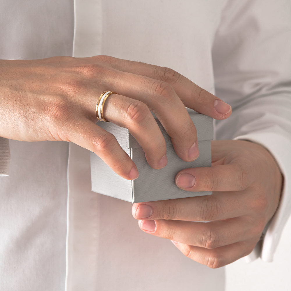 Marie Mas presents the elegant and intriguingly stylish Unisex WE Ring designed specially to help you celebrate love and lasting commitment. Part of their new U & I Collection of wedding bands, this WE Ring comprises a double floating band in polished yellow gold and a single gold band finished with white enamel. You can wear the single band between the double bands. The U & I rings are expertly crafted as an elegant play of texture and colour in 18k rose gold, white gold or classic yellow gold with three band styles and colour choices of enamel that you can choose from. With a stunning array of possible combinations, you are left with the freedom to find your own personal style and expression. The ring can be further personalised with an engraving on the inner or outer ring band. Write to us at customercare@thejewelleryroom.com with your personalisation requests.