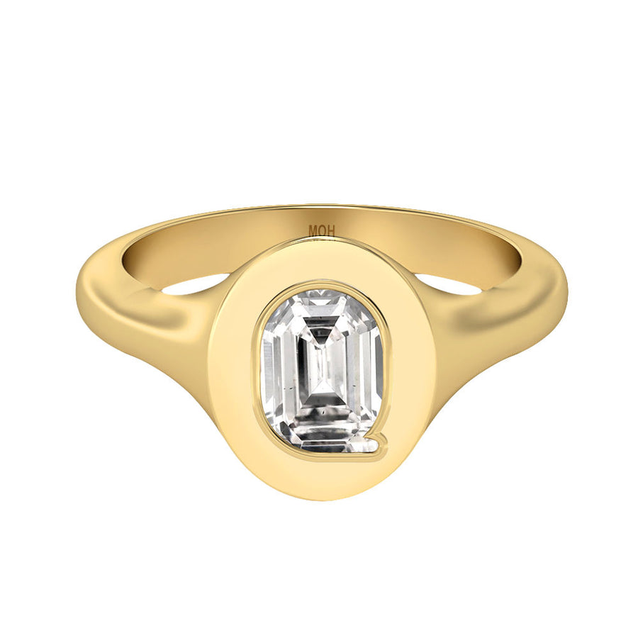 MOHAlphabet 18K Gold Initial Q Signet Ring w. Solitaire Lab-Grown Diamond