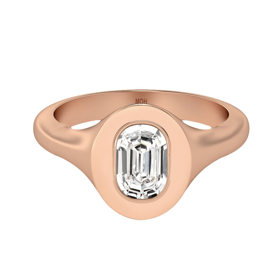 MOHAlphabet 18K Rosegold Initial O Signet Ring w. Solitaire Lab-Grown Diamond