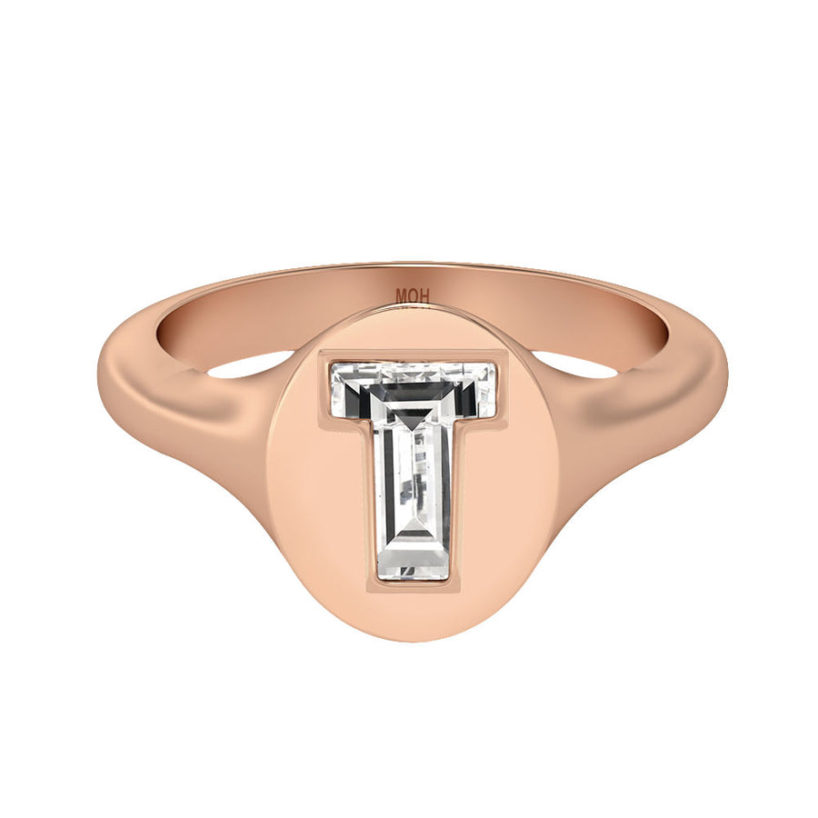 MOHAlphabet 18K Rosegold Initial T Signet Ring w. Solitaire Lab-Grown Diamond