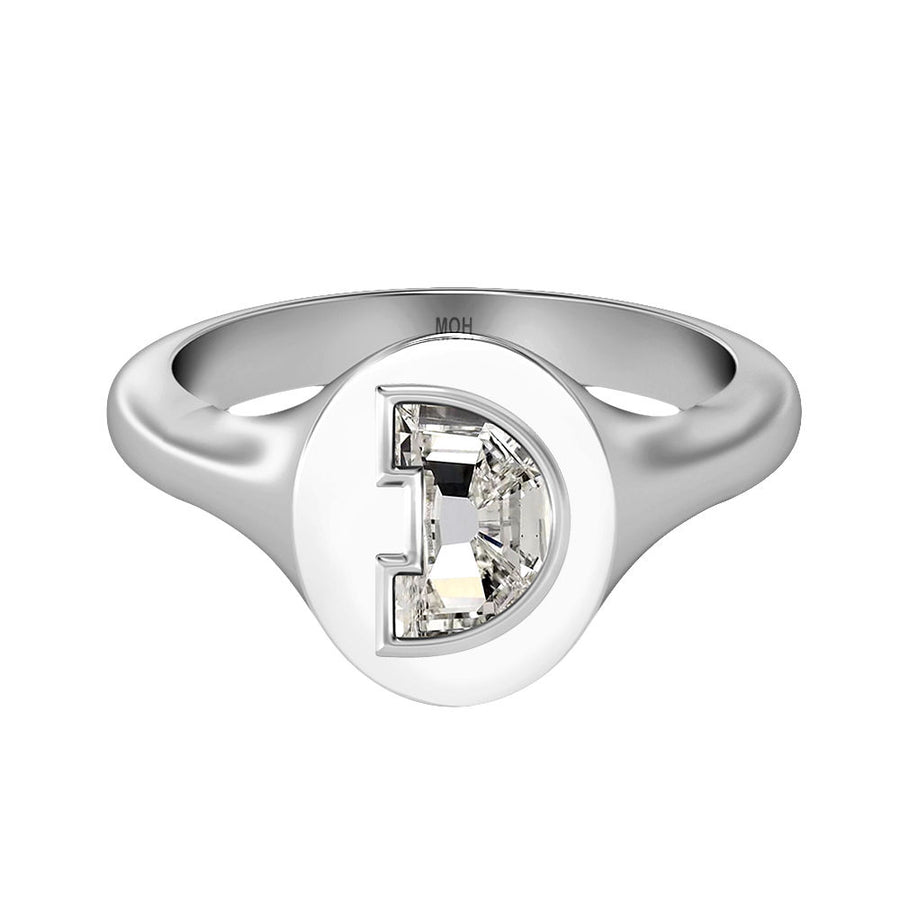 MOHAlphabet 18K Whitegold Initial D Signet Ring w. Solitaire Lab-Grown Diamond