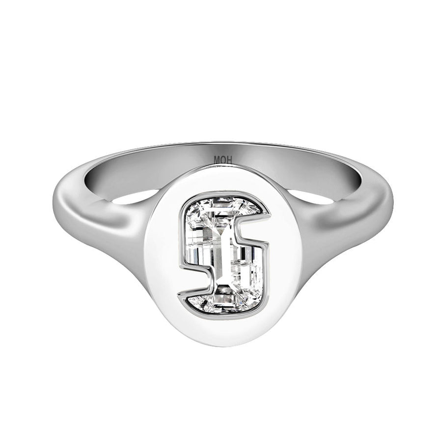 MOHAlphabet 18K Whitegold Initial S Signet Ring w. Solitaire Lab-Grown Diamond
